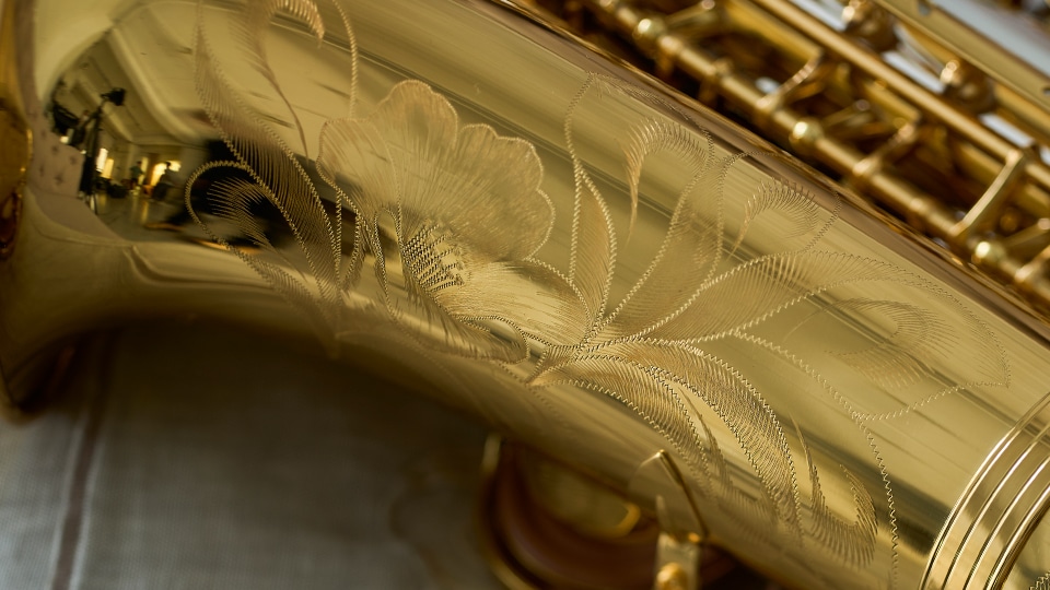シルヴァーとブラスの2つの材質を管体に採用、重厚さと華やかさが引き立つ音色が魅力です。さらに管体に咲き誇る美しい彫刻は昔ながらの製法で彫られており、音と見た目どちらも妥協せずに創り上げられた逸品です。