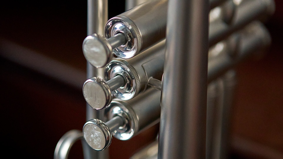 ひと目で楽器の魅力を感じられるサテンシルバー仕上げ。