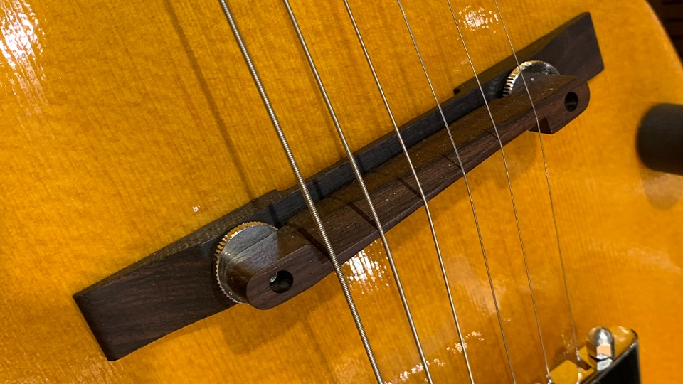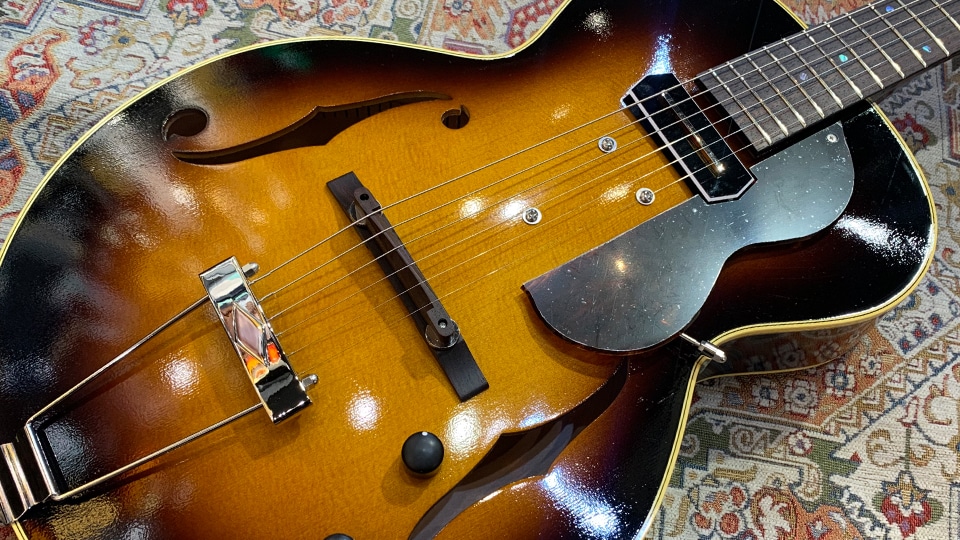 当モデルは設計者の樋口氏と共に約2年間の構想の末、完成したカスタムオーダーモデルです。"オールドスタイルのフルアコ"をコンセプトとして製作された当モデルは、ウッドスペックや基本設計は通常のLadybagをベースとながら、ピックアップにはローラー製チャーリー・クリスチャン・ピックアップを搭載、ブリッジはアコースティック感とビンテージフィールを求めてウッドブリッジをセレクト、塗装も極薄のラッカー塗装を採用しております。カラーも色焼けた質感を再現したアンティーク調に仕上げられており、その佇まいも魅力です。