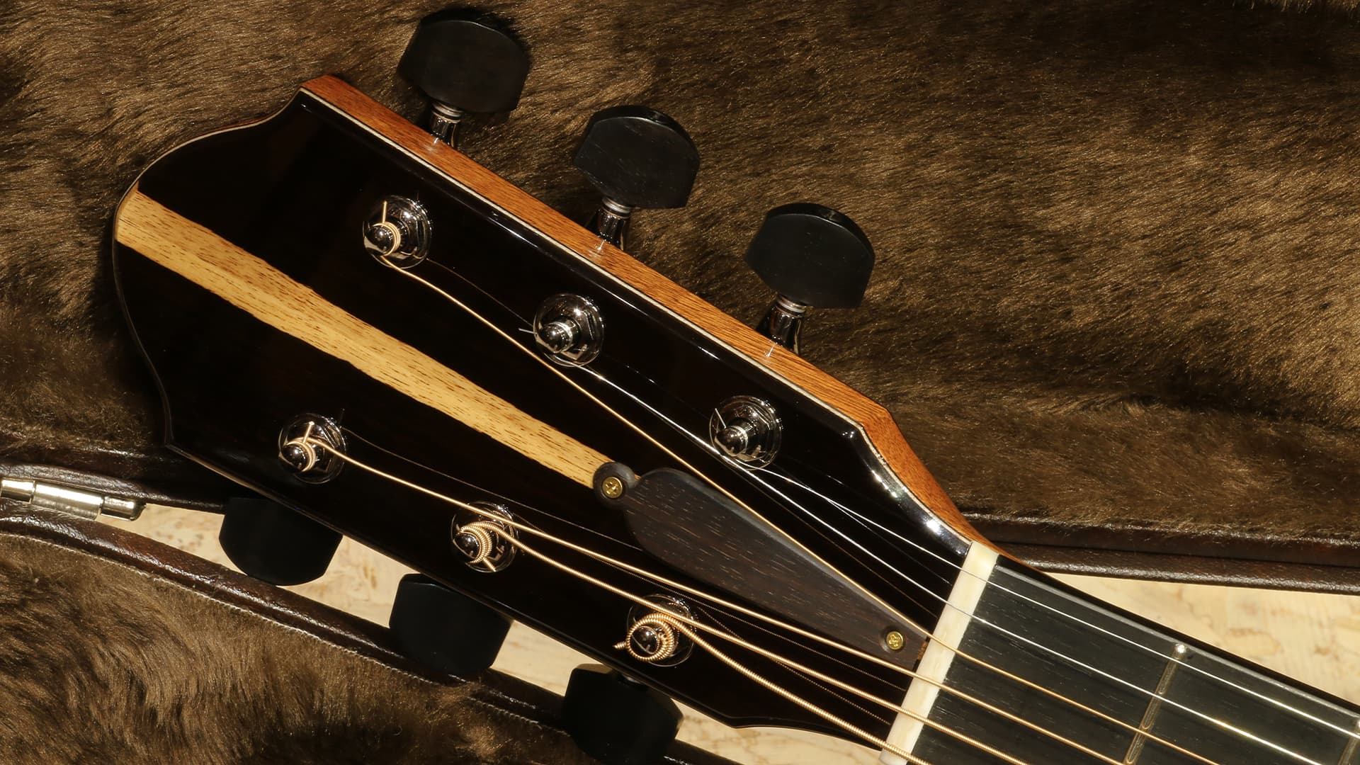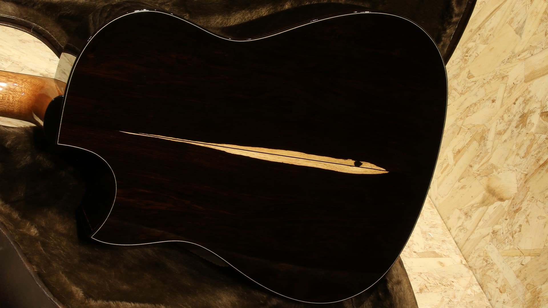 シェイプはFURUYAギターの数あるシェイプの人気3大機種の1つと言えるSDシェイプ。このSDシェイプ(Small-D)はRDというドレッドノートタイプと、Solo ConsortというOMスタイルモデルのちょうど中間に位置する15.5インチ幅のコンパクトなドレッドノート、OMサイズのハードケースに収まるのが特徴です。