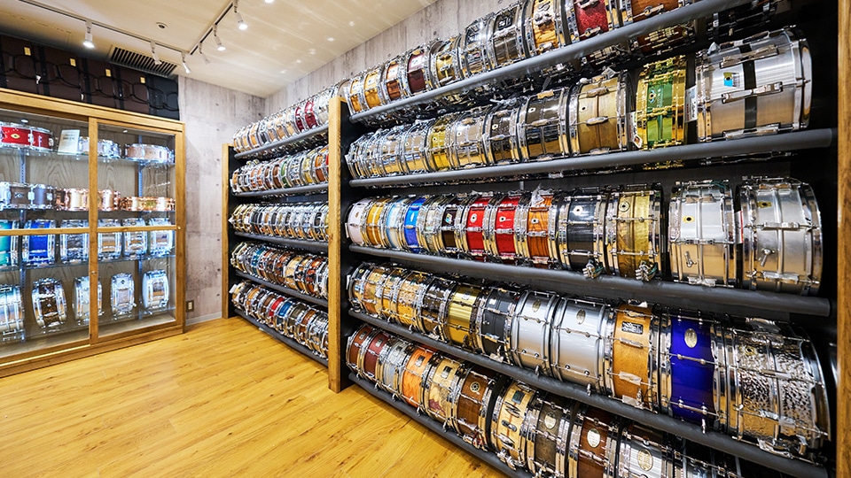 1フロアにドラム&ベースの音色が響き渡る広々とした展示空間、大型機材が持つポテンシャルを可能な限りお確かめ頂ける試奏室、ワークショップやセミナー、展示会などを実施するイベントスペースも備えます。