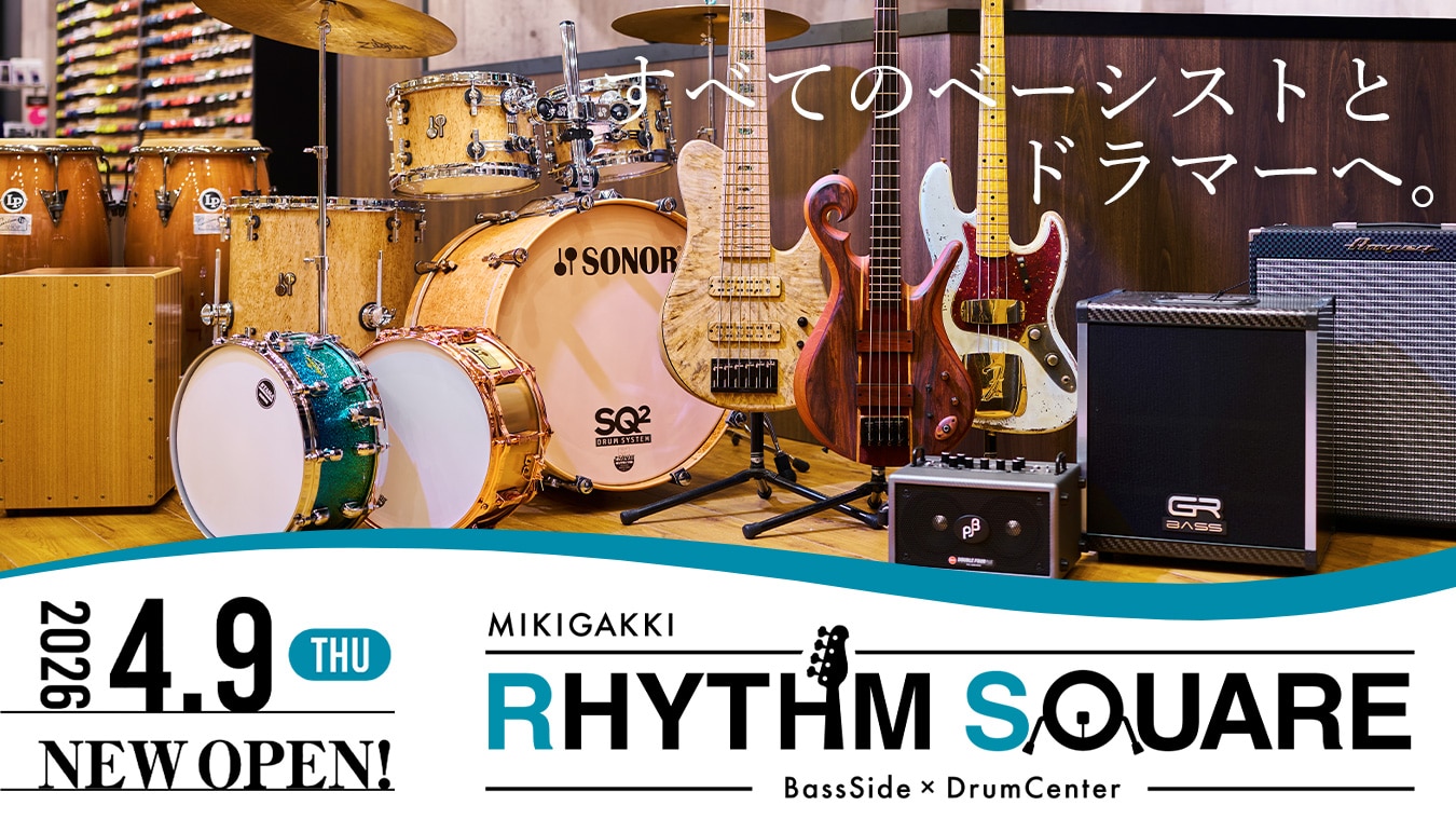 MIKI DRUM CENTER(梅田エリア)とMIKI BASS SIDE(心斎橋エリア)が1店舗に統合し、新たにリズムセクションに特化した「MIKIGAKKI RHYTHM SQUARE」として心斎橋・アメリカ村に誕生。