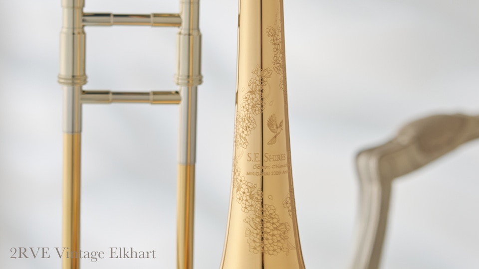 シャイアーズブランドの生みの親であるSteveShires氏が理想を追求し設計・製作されたモデル"2RVE Vintage Elkhart"モデルに三木楽器200周年を記念した特別デザインの彫刻が施されている数量限定記念モデル。