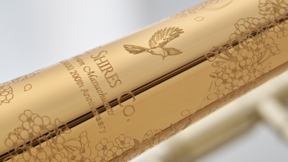 ニューヨーク・フィルハーモニック トロンボーン奏者 コリン・ウイリアムズ氏のアーティストモデルに三木楽器200周年を記念した特別デザインの彫刻が施されている数量限定記念モデル。