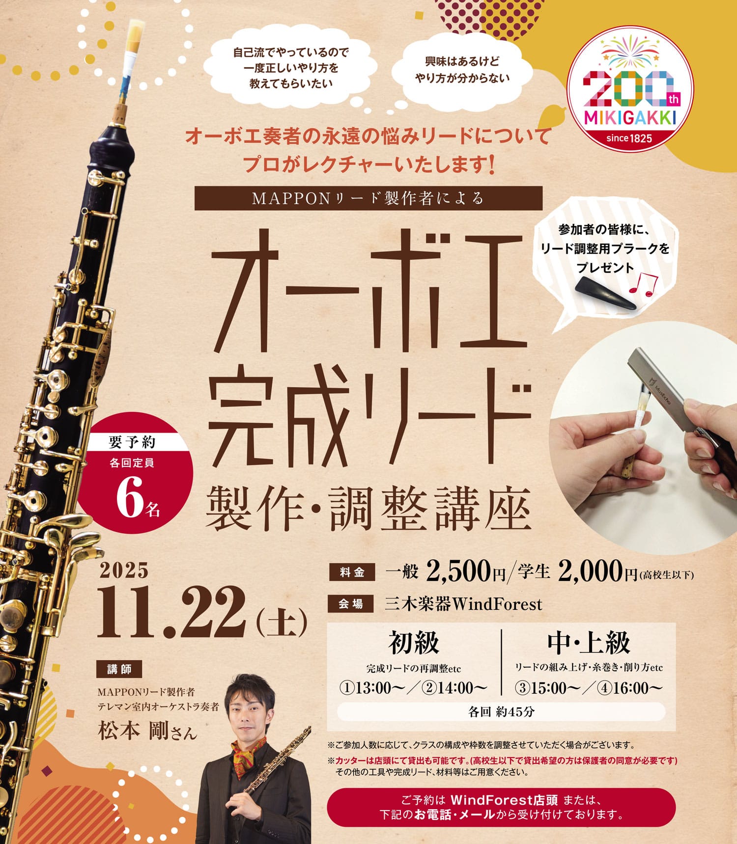MAPPONリード製作者によるオーボエ完成リード制作・調整講座